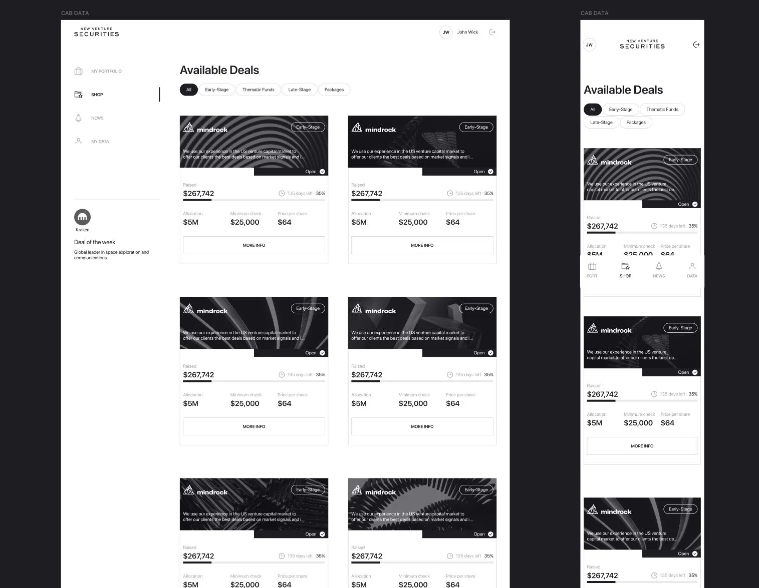 New Venture — платформа позволяет пользователю удаленно купить ценные бумаги фонда. Удобная система для менеджеров и администраторов, которая позволяет делать все функции за клиента, кроме финального подписания документа